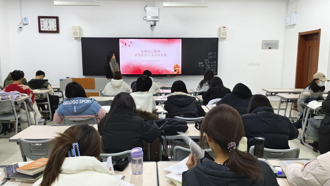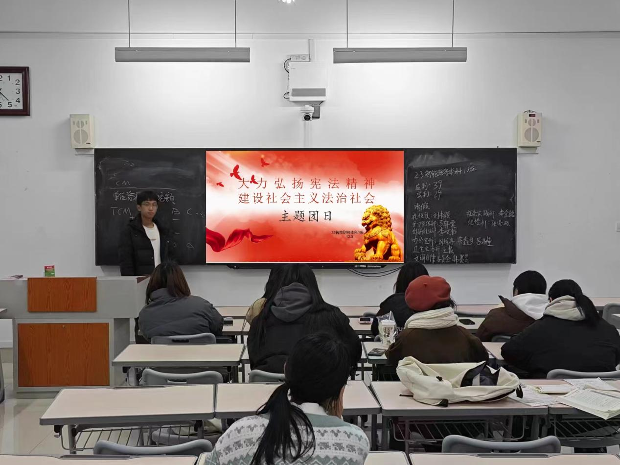 12月3日晚,bwin必赢各班级在增信楼教室分别开展“大力弘扬宪法精神,建设社会主义文化强国”主题团日。老师们及班级负责人通过具体讲解,积极推进同学们学习宣传习近平新时代中国特色社会主义思想,特别是习近平法治思想及其关于宪法的重要讲话和指示批示精神,加深了同学们对宪法的理解。12月4日,公司组织员工进行宪法晨读活动。员工通过普法网收看网络直播,同步跟读宪法相关内容,接着,同学们跟唱《宪法伴我们成长》歌曲,让宪法普及更加深入人心。