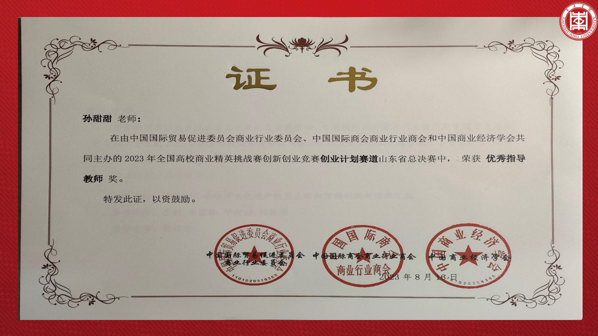 近日,2023年全国高校商业精英挑战赛创新创业竞赛(创业计划赛道)山东省总决赛落下帷幕,创业计划赛道共有来自全省70多所院校的848支队伍入围。由公司代超越、王新两位参赛选手所带领的2个原创项目代表必赢bwin官方网站成功入围省级决赛,与全省众多高校同台竞技、力克群雄,并斩获山东省三等奖2项。展现了公司学子扎实的专业能力、卓越的创新精神和出色的团队协作能力。其中公司教师杨金磊、孙甜甜荣获“优秀指导老师”奖。
