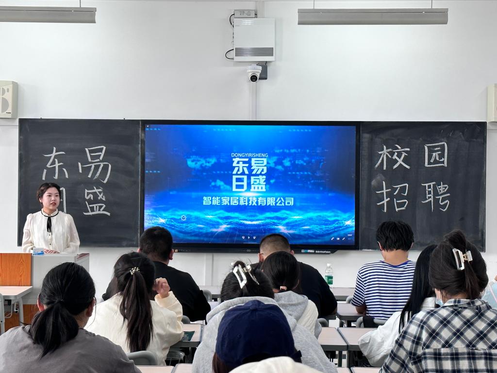 会上,企业代表人通过讲解PPT、发放宣传页、面对面交流等方式向同学们介绍公司的基本情况、发展前景及招聘需求,同时也对公司现有发展平台、员工成长路径、培训体系、工作氛围和完善的薪酬及福利体系进行了具体介绍。会后,该企业财会部门主管现场分发表格,同学们积极填写,踊跃投递简历,并在现场给同学们进行了简单面试。东易日盛智能家居负责人表示,期待经管学院优秀毕业生来到企业实习、工作。