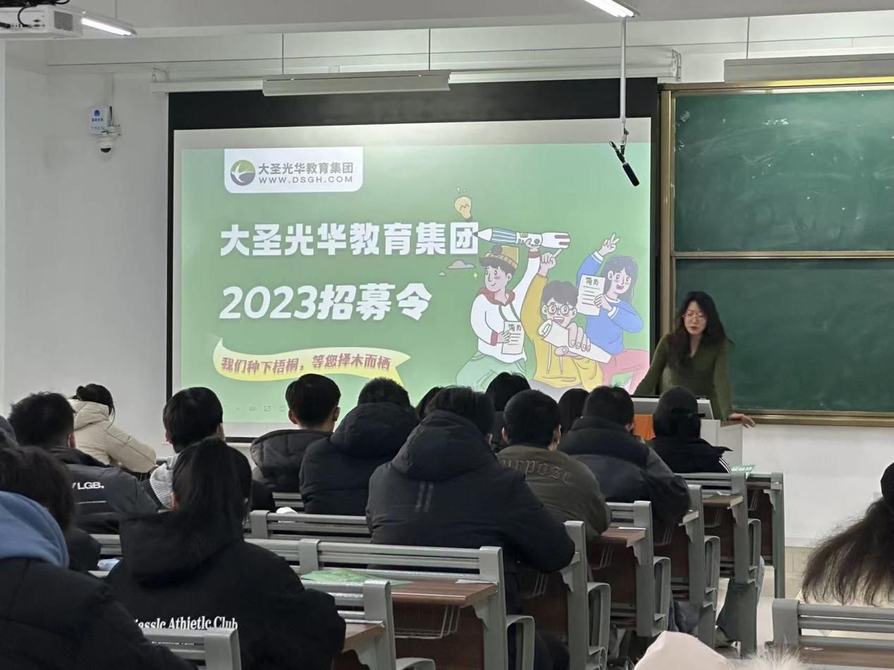 宣讲会现场,同学们通过观看视频、宣讲分享、互动问答等形式,对大圣光华教育集团的发展现状、业务布局、企业文化等方面有了全面了解,进一步明晰了招聘岗位、招聘流程、职业路径等求职要点信息。大圣光华教育集团人资经理于文颖就毕业生关心的公司发展平台与机会等问题与同学们进行了交流。参加此次宣讲会的同学表示对大圣光华教育集团的工作环境和就业岗位十分感兴趣,有意向的毕业生现场向企业投递了自己的求职简介并完成了初次面试。