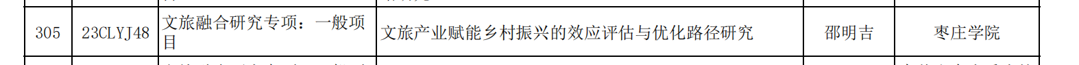 日前,山东省哲学社会科学工作办公室公布了2023年度省社科规划研究专项立项名单。2023年度山东省社科规划13个研究专项经过通讯初评、会议评审,共评选出拟立项项目462项。公司邵明吉博士的“文旅产业赋能乡村振兴的效应评估与优化路径研究(23CLYJ48)”项目获批文旅融合研究专项一般项目。此次立项对于学院提升整体科研水平、增强学科影响力具有重要意义。