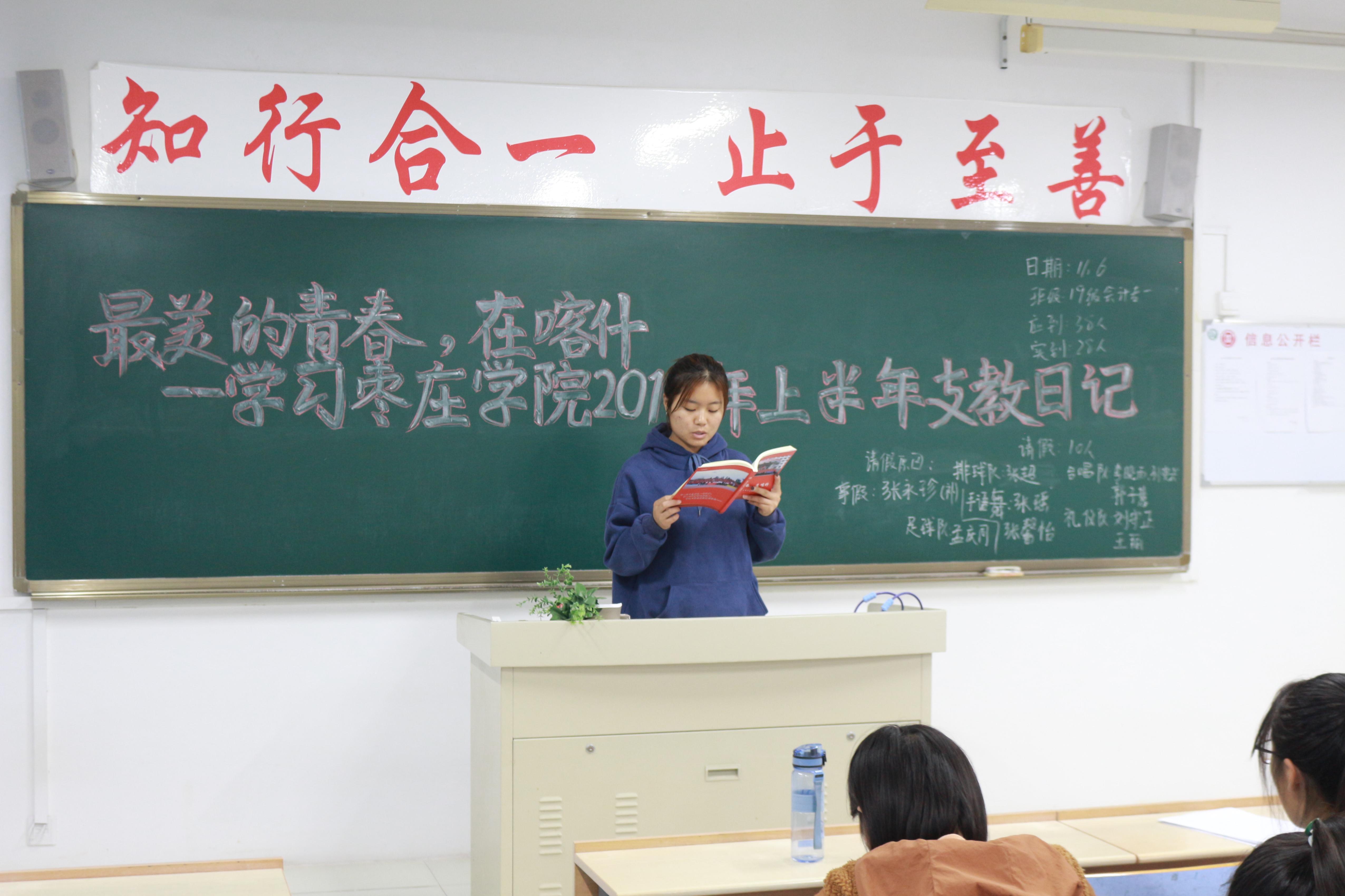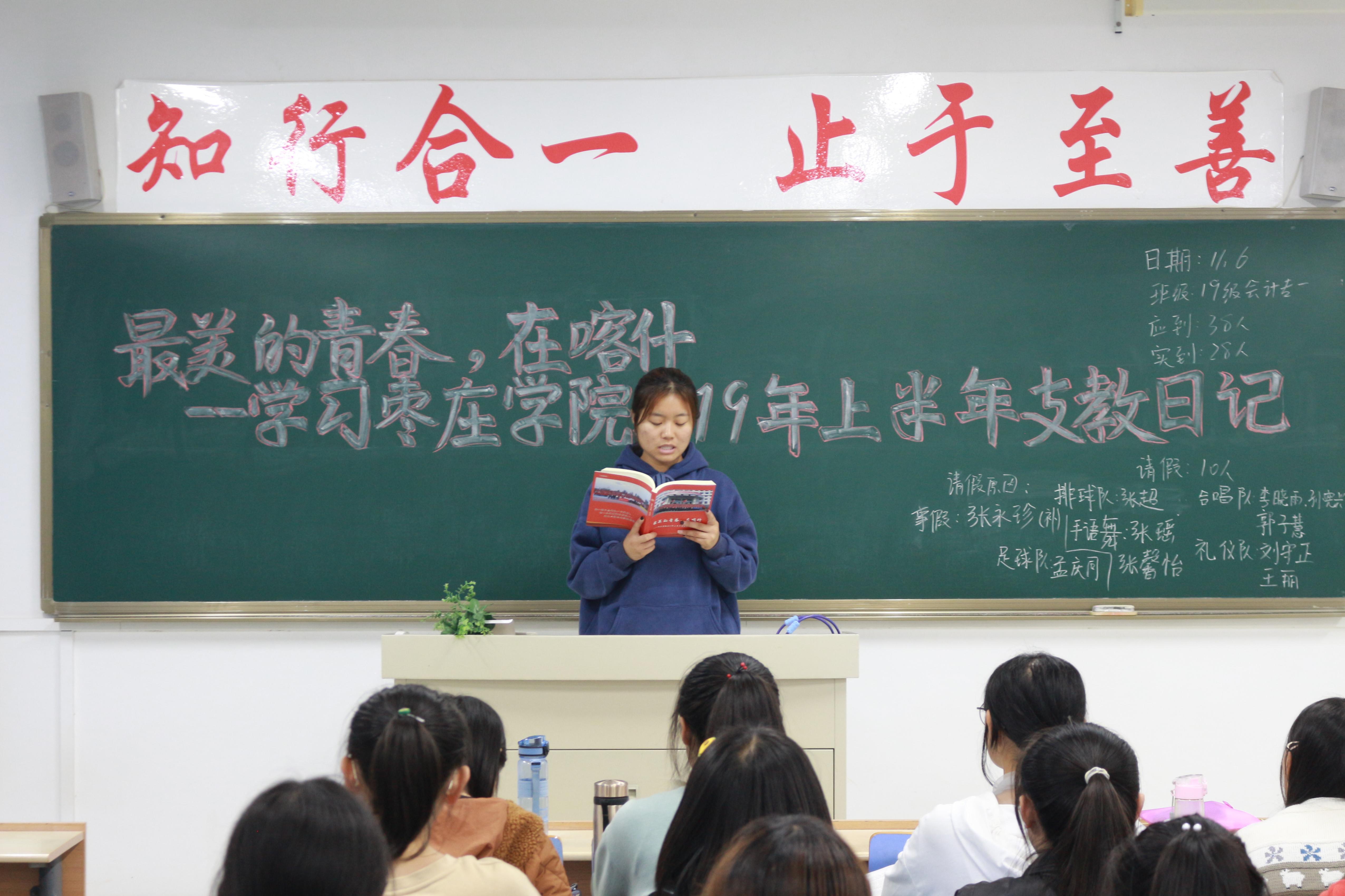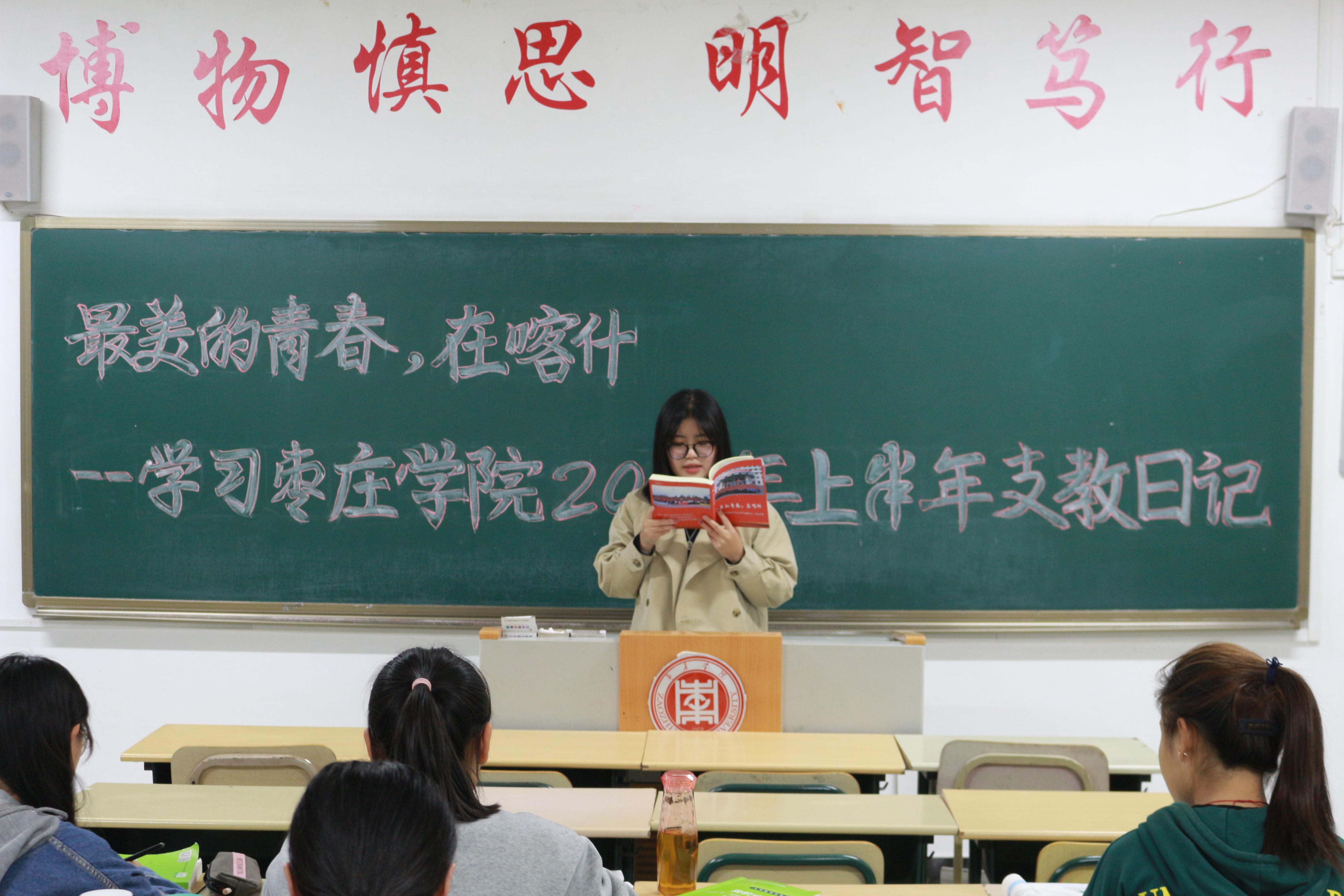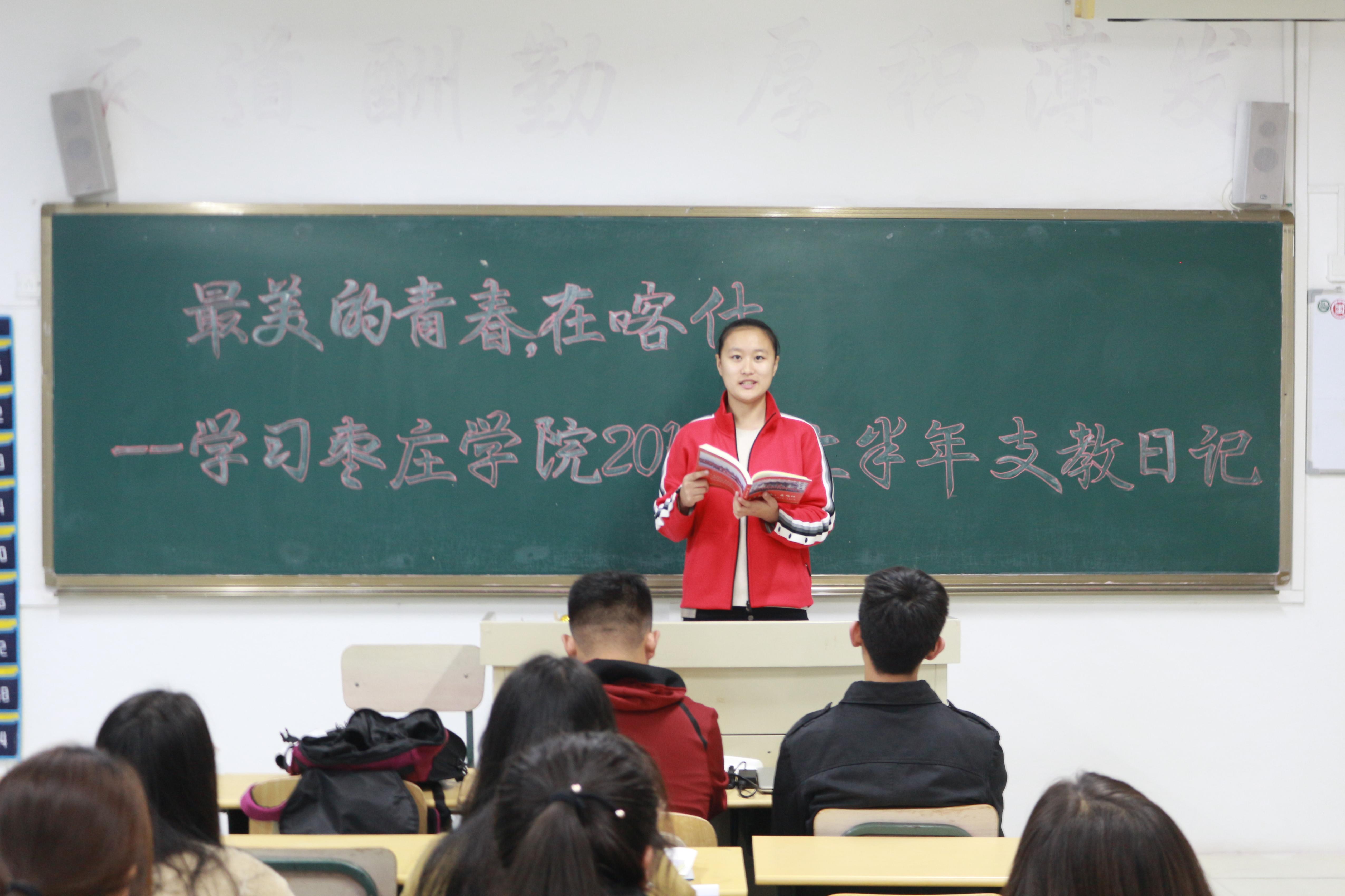 本次团日,各班团支书以支教日记、支教征文为切入点,进一步加深同学们对支教生活的认识与了解,激发同学们的责任感和使命感,树立投身边疆的理想信念。将边疆支教与社会实践相结合,以黑板报的形式对员工进行奉献青春支教宣传。学习期间同学们认真听讲,积极参与,各班员工代表以发表演说的形式,表达了自己对老员工支教生活的深切感悟。